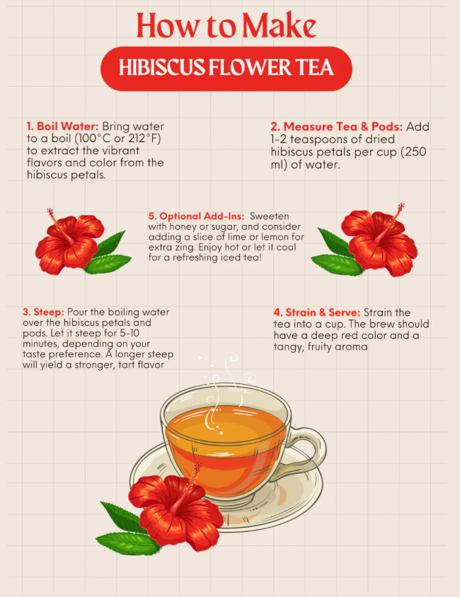 Add 1 teaspoon (2 g) of Hibiscus Flower Tea to 150–200 ml of hot water.
