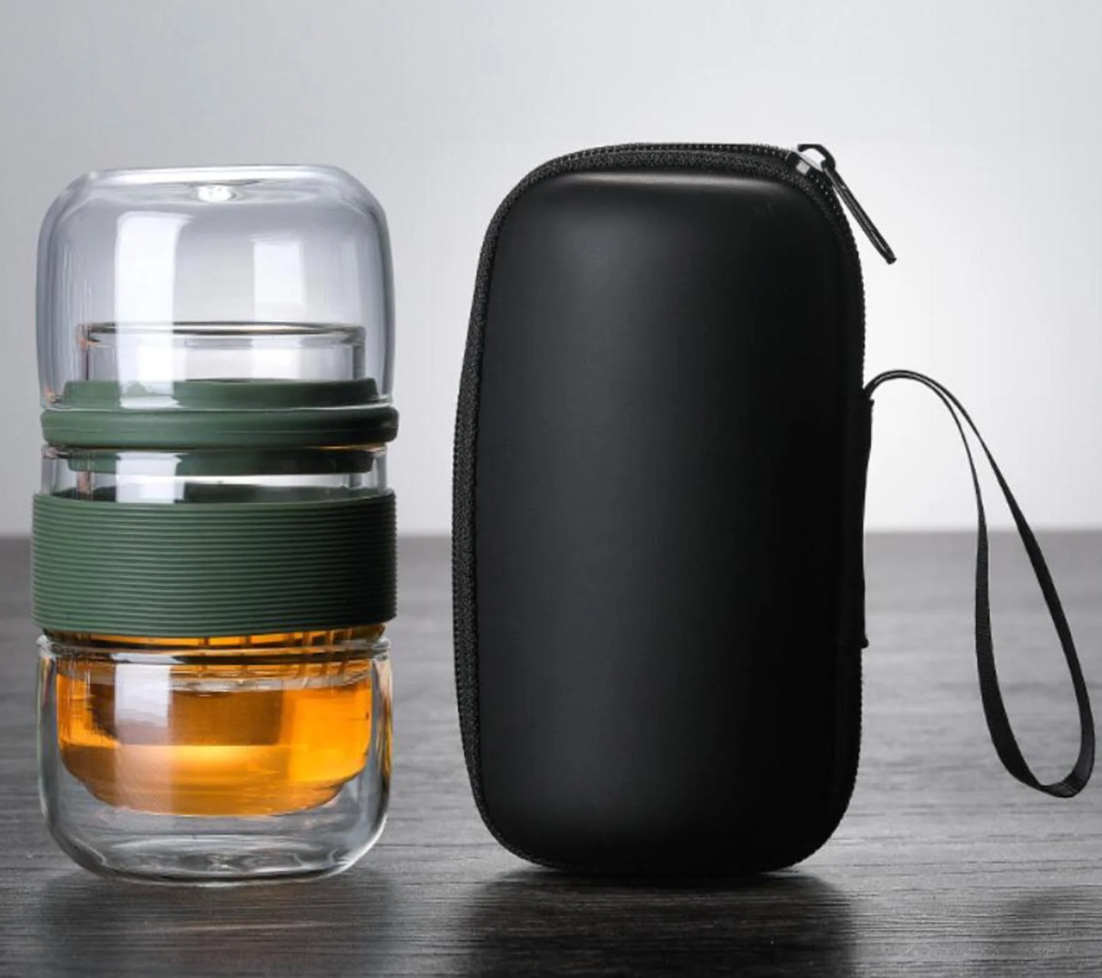 This elegant portable glass tea set combines modern design with timeless ritual — perfect for your home, office, or travel moments.